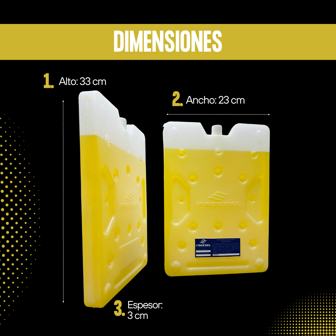 Este kit de 10 pilas de enfriamiento FREEZEL es la solución perfecta procesos de conservación, distribución y transporte de alimentos que requieren mantener una temperatura constante entre 0 y 4°C.