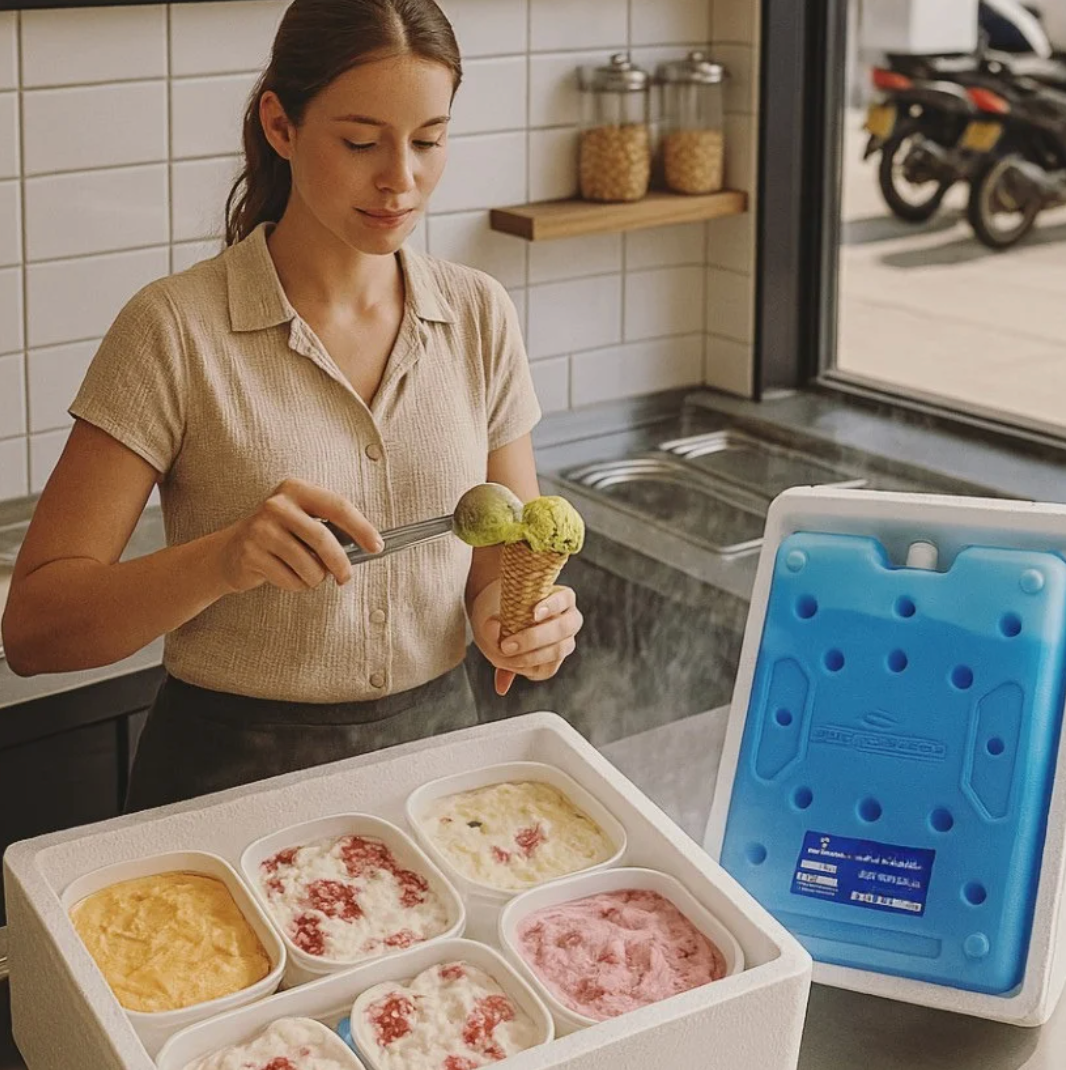 - Transporte de Alimentos: Ayudan a conservar productos perecederos, como carne, Helados, lácteos, frutas, pulpas, vegetales y más... manteniéndolos en la temperatura ideal durante su almacenamento, transporte o envío.